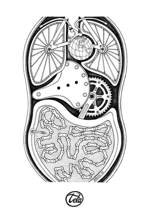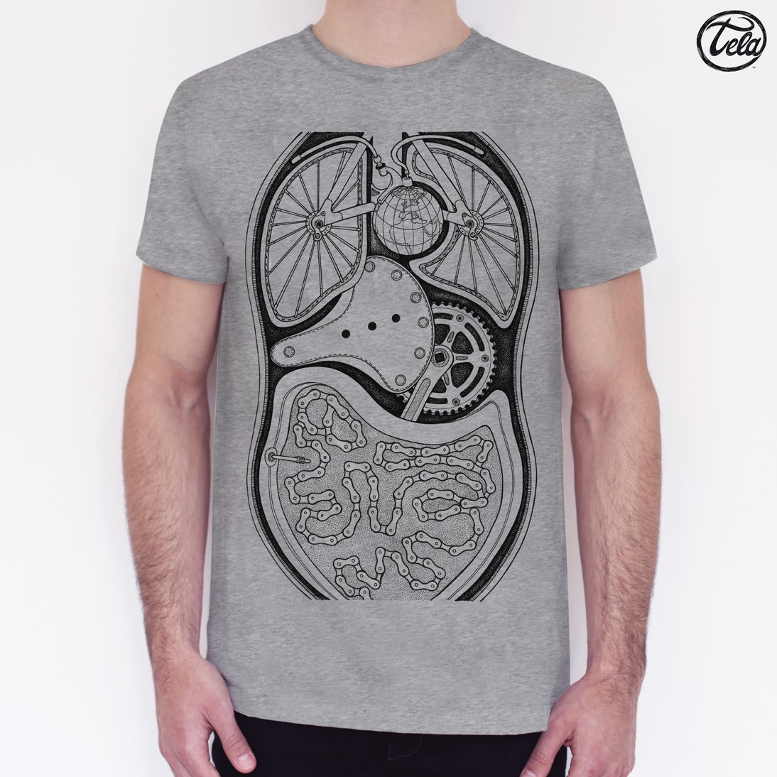 T-shirt 100% organic cotton hand screen printed in my Lab with water-based ink, and customized with our original illustration "Organismo Meccanico".